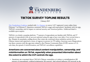 The Vandenberg Coalition worked with J.L. Partners to survey 1,017 registered voters online from February 7 to February 9. Questions measured TikTok’s usage and respondents’ familiarity with the app, TikTok’s