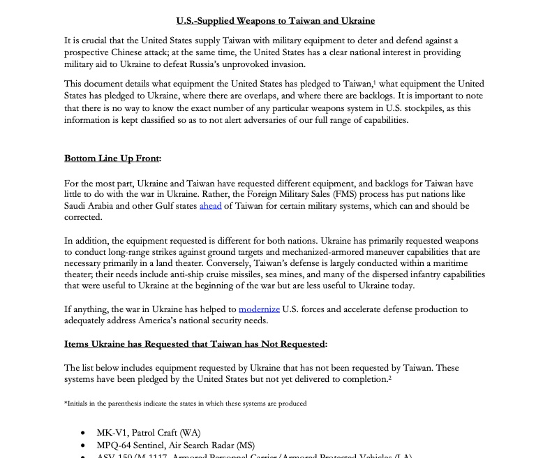 It is crucial that the United States supply Taiwan with military equipment to deter and defend against a prospective Chinese attack; at the same time, the United States has a clear national interest in providing military aid to Ukraine to defeat Russia’s…