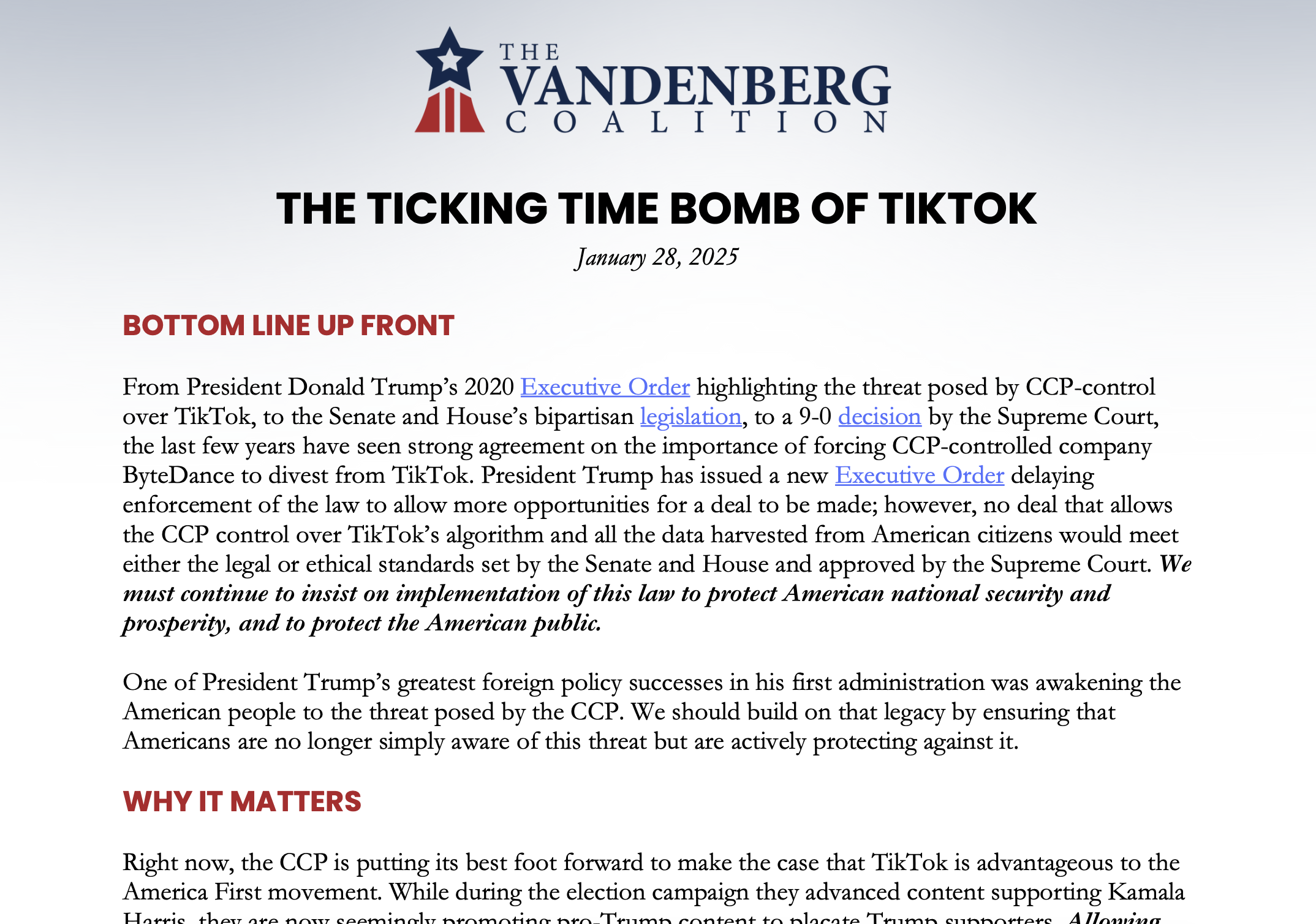 The Vandenberg Coalition Letter in Support of TikTok Divestment Bill Powered By EmbedPress